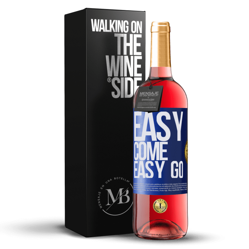 | Name | Flaschenpost. Weinflasche mit personalisiertem Etikett. Nachricht: "Easy come, easy go". Blaue Markierung. Anpassbares Etikett. |