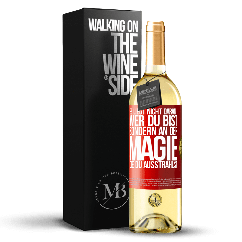 Flaschenpost. Weinflasche mit personalisiertem Etikett. Nachricht: "Es liegt nicht daran, wer du bist, sondern an der Magie, die du ausstrahlst". Rote Markierung. Anpassbares Etikett. |