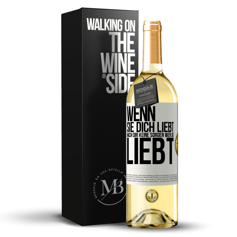 | Name | Flaschenpost. Weinflasche mit personalisiertem Etikett. Nachricht: "Wenn sie dich liebt, mach dir keine Sorgen wer sie liebt". Weißes Etikett. Anpassbares Etikett. |
