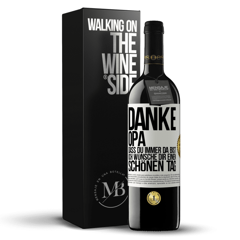 | Name | Flaschenpost. Weinflasche mit personalisiertem Etikett. Nachricht: "Danke, Opa, dass du immer da bist. Ich wünsche dir einen schönen Tag". Weißes Etikett. Anpassbares Etikett. |
