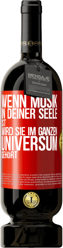 Flaschenpost. Weinflasche mit personalisiertem Etikett. Nachricht: "Wenn Musik in deiner Seele ist, wird sie im ganzen Universum gehört". Rote Markierung. Anpassbares Etikett. |