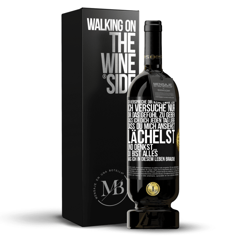| Name | Flaschenpost. Weinflasche mit personalisiertem Etikett. Nachricht: "Ich verspreche dir keine ewige Liebe, ich versuche nur, dir das Gefühl zu geben, dass ich dich jeden Tag liebe, dass du mich ans". Schwarzes Etikett. Anpassbares Etikett. |