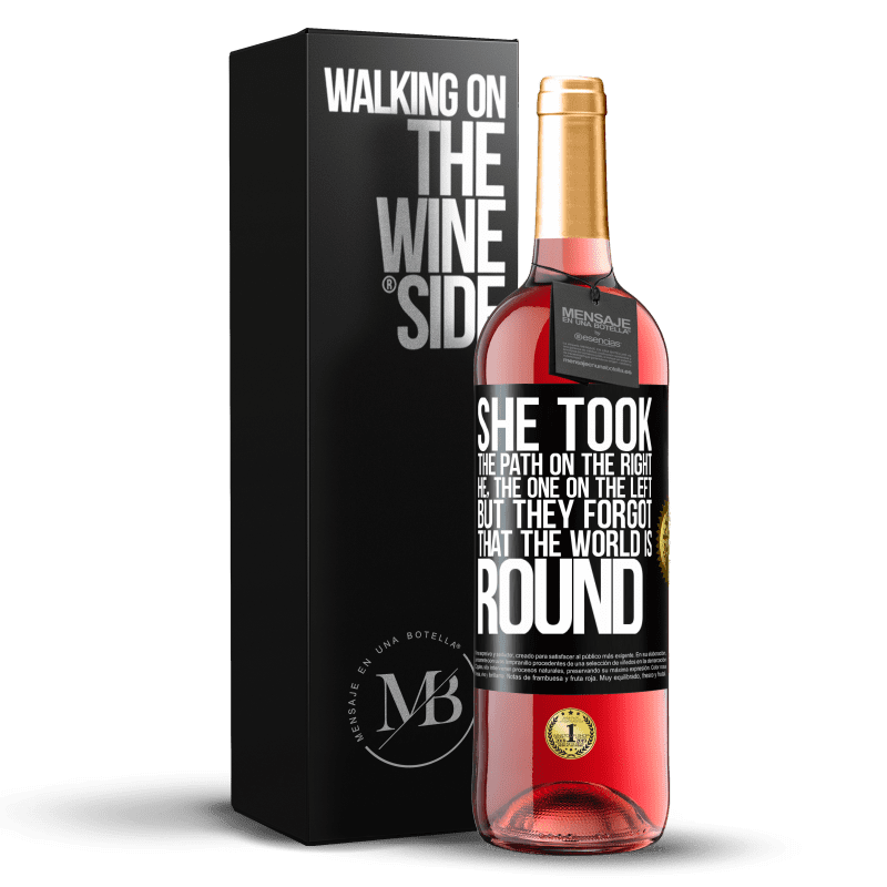 Message in a Bottle. Wine bottle with customized label. Message: "She took the path on the right, he, the one on the left. But they forgot that the world is round". Black Label. Customizable label. |