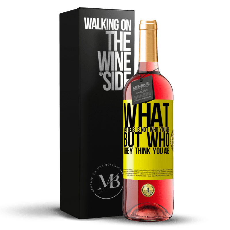 Message in a Bottle. Wine bottle with customized label. Message: "What matters is not who you are, but who they think you are". Yellow Label. Customizable label. |