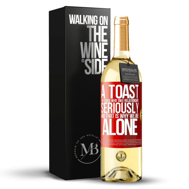 Message in a Bottle. Wine bottle with customized label. Message: "A toast for those who take relationships seriously and that is why we are alone". Red Label. Customizable label. |