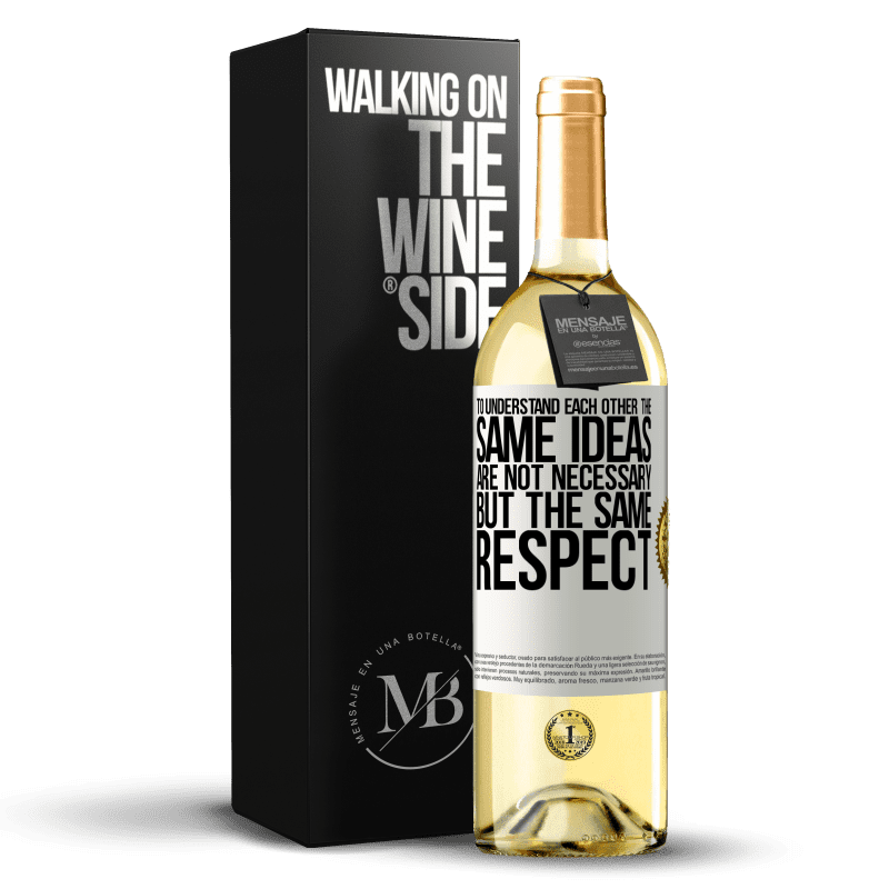 Message in a Bottle. Wine bottle with customized label. Message: "To understand each other the same ideas are not necessary, but the same respect". White Label. Customizable label. |