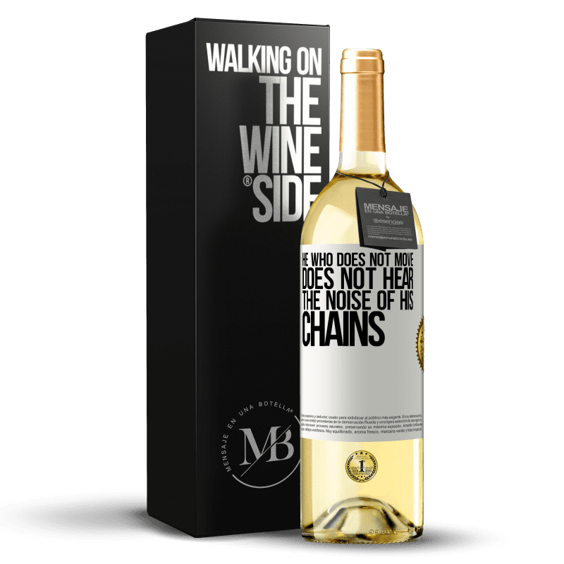 Message in a Bottle. Wine bottle with customized label. Message: "He who does not move does not hear the noise of his chains". White Label. Customizable label. |