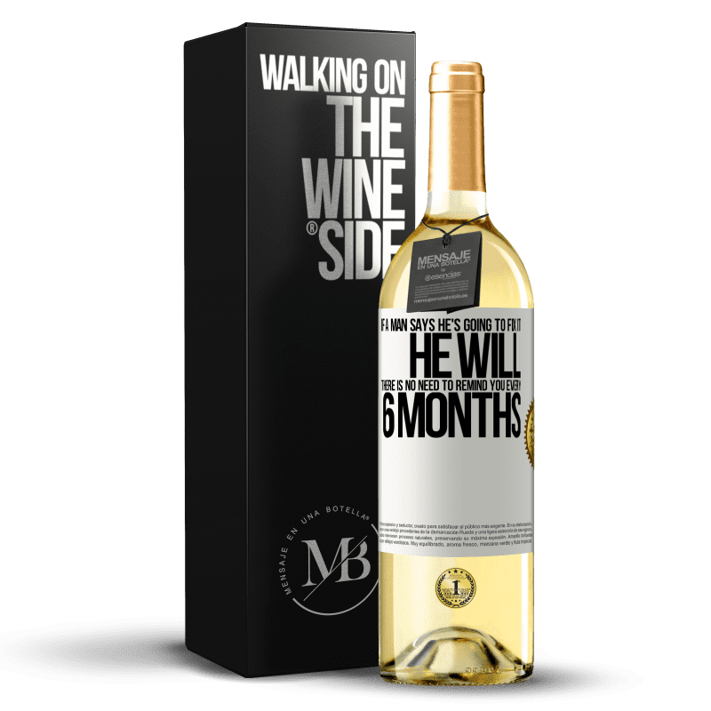 Message in a Bottle. Wine bottle with customized label. Message: "If a man says he's going to fix it, he will. There is no need to remind you every 6 months". White Label. Customizable label. |