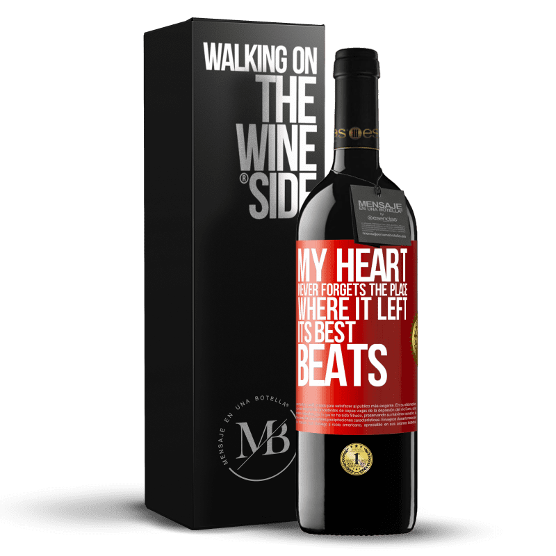 Message in a Bottle. Wine bottle with customized label. Message: "My heart never forgets the place where it left its best beats". Red Label. Customizable label. |