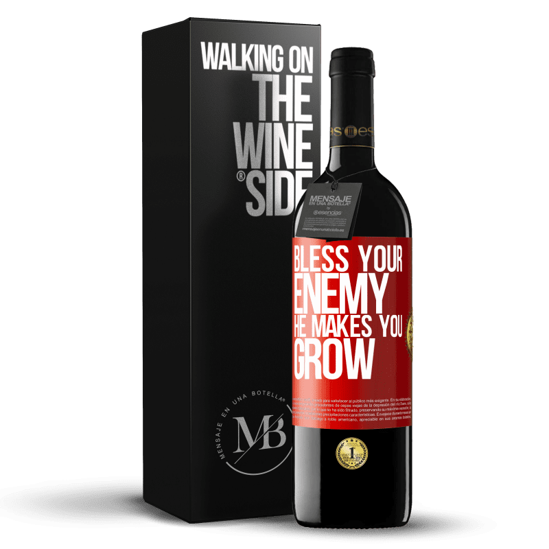 Message in a Bottle. Wine bottle with customized label. Message: "Bless your enemy. He makes you grow". Red Label. Customizable label. |
