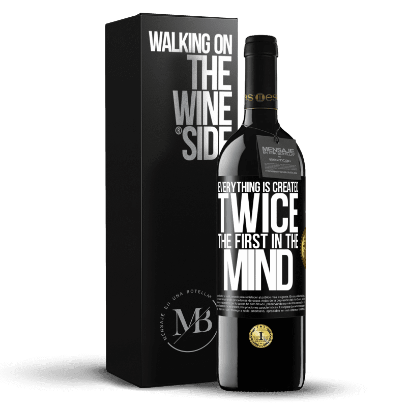 Message in a Bottle. Wine bottle with customized label. Message: "Everything is created twice. The first in the mind". Black Label. Customizable label. |