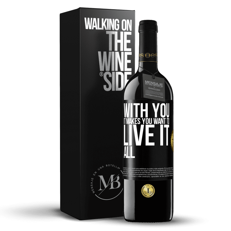 Message in a Bottle. Wine bottle with customized label. Message: "With you it makes you want to live it all". Black Label. Customizable label. |