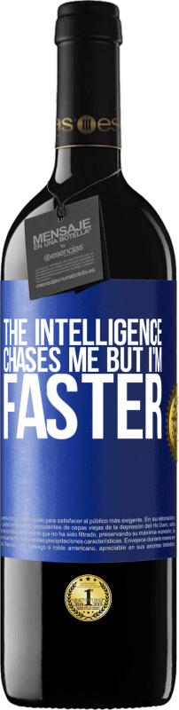 Message in a Bottle. Wine bottle with customized label. Message: "The intelligence chases me but I'm faster". Blue Label. Customizable label. |
