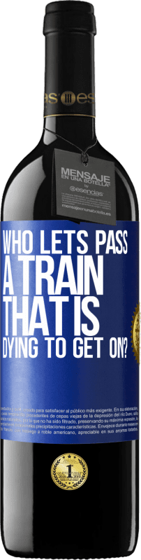 Message in a Bottle. Wine bottle with customized label. Message: "who lets pass a train that is dying to get on?". Blue Label. Customizable label. |