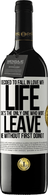 Message in a Bottle. Wine bottle with customized label. Message: "I decided to fall in love with life. She's the only one who won't leave me without first doing it". White Label. Customizable label. |