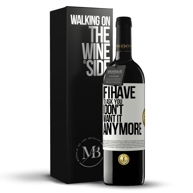 Message in a Bottle. Wine bottle with customized label. Message: "If I have to ask you, I don't want it anymore". White Label. Customizable label. |