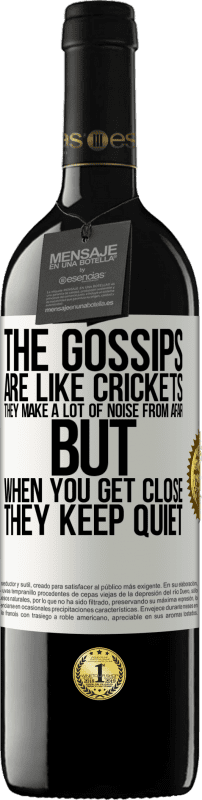 Message in a Bottle. Wine bottle with customized label. Message: "The gossips are like crickets, they make a lot of noise from afar, but when you get close they keep quiet". White Label. Customizable label. |