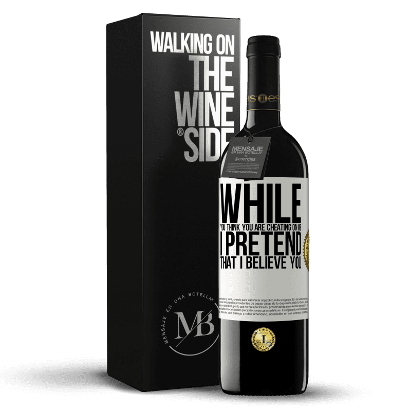 Message in a Bottle. Wine bottle with customized label. Message: "While you think you are cheating on me, I pretend that I believe you". White Label. Customizable label. |