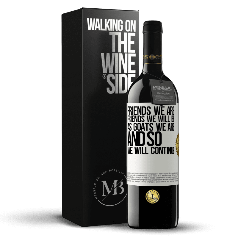 Message in a Bottle. Wine bottle with customized label. Message: "Friends we are, friends we will be, as goats we are and so we will continue". White Label. Customizable label. |