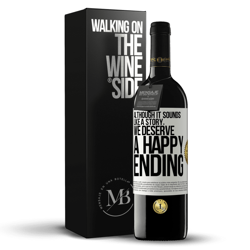 Message in a Bottle. Wine bottle with customized label. Message: "Although it sounds like a story, we deserve a happy ending". White Label. Customizable label. |