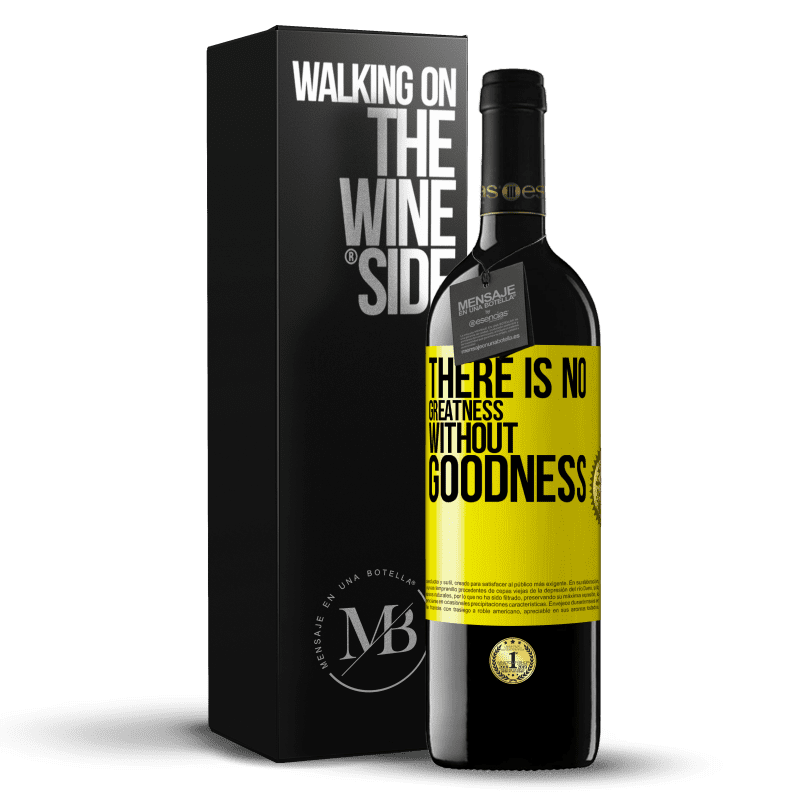 | Name | Message in a Bottle. Wine bottle with customized label. Message: "There is no greatness without goodness". Yellow Label. Customizable label. |