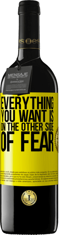 Message in a Bottle. Wine bottle with customized label. Message: "Everything you want is on the other side of fear". Yellow Label. Customizable label. |