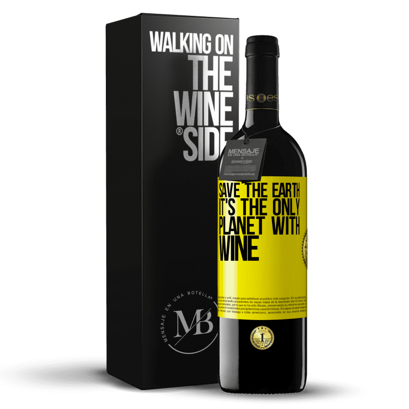 Message in a Bottle. Wine bottle with customized label. Message: "Save the earth. It's the only planet with wine". Yellow Label. Customizable label. |