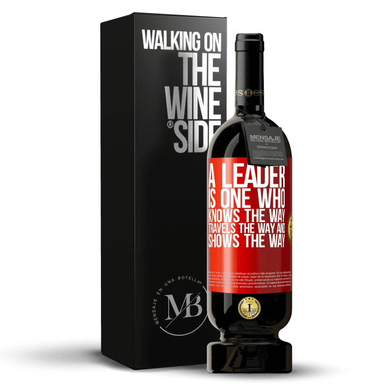 Message in a Bottle. Wine bottle with customized label. Message: "A leader is one who knows the way, travels the way and shows the way". Red Label. Customizable label. |