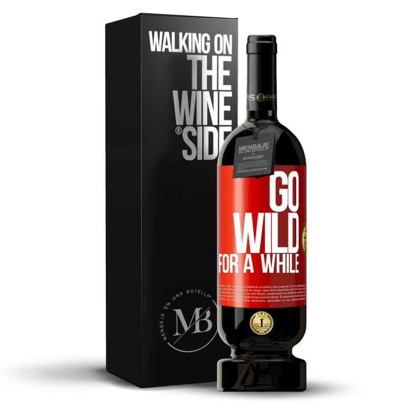 Message in a Bottle. Wine bottle with customized label. Message: "Go wild for a while". Red Label. Customizable label. |