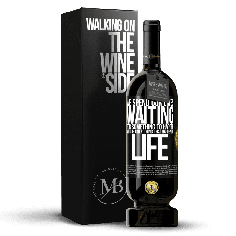 Message in a Bottle. Wine bottle with customized label. Message: "We spend our lives waiting for something to happen, and the only thing that happens is life". Black Label. Customizable label. |
