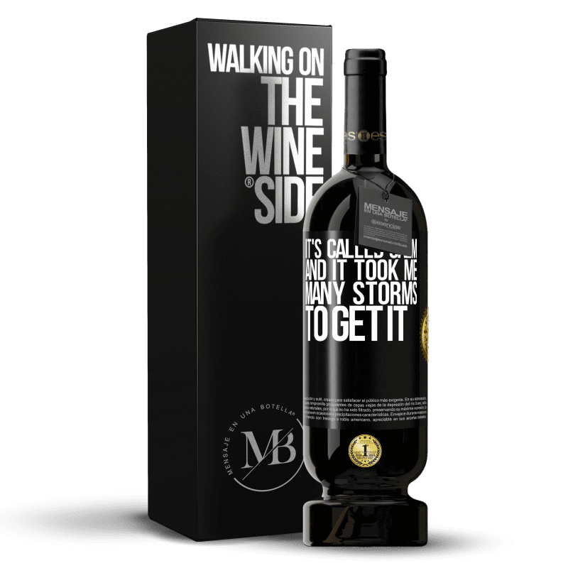 Message in a Bottle. Wine bottle with customized label. Message: "It's called calm, and it took me many storms to get it". Black Label. Customizable label. |