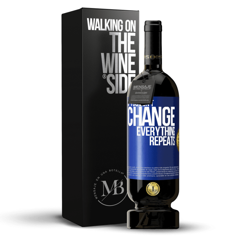 Message in a Bottle. Wine bottle with customized label. Message: "If you don't change everything repeats". Blue Label. Customizable label. |