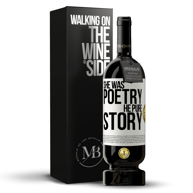Message in a Bottle. Wine bottle with customized label. Message: "She was poetry, he pure story". White Label. Customizable label. |