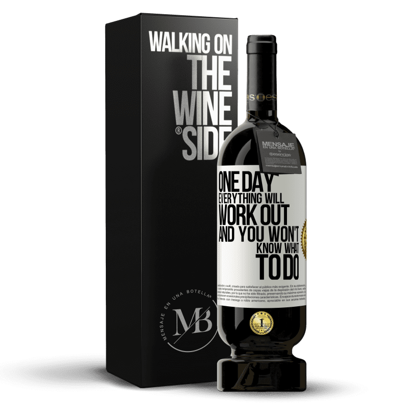Message in a Bottle. Wine bottle with customized label. Message: "One day everything will work out and you won't know what to do". White Label. Customizable label. |