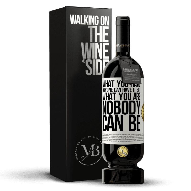 Message in a Bottle. Wine bottle with customized label. Message: "What you have anyone can have it, but what you are nobody can be". White Label. Customizable label. |