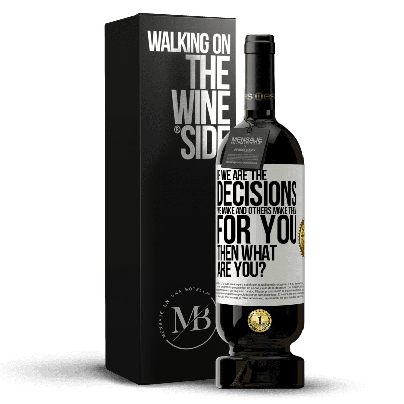 Message in a Bottle. Wine bottle with customized label. Message: "If we are the decisions we make and others make them for you, then what are you?". White Label. Customizable label. |