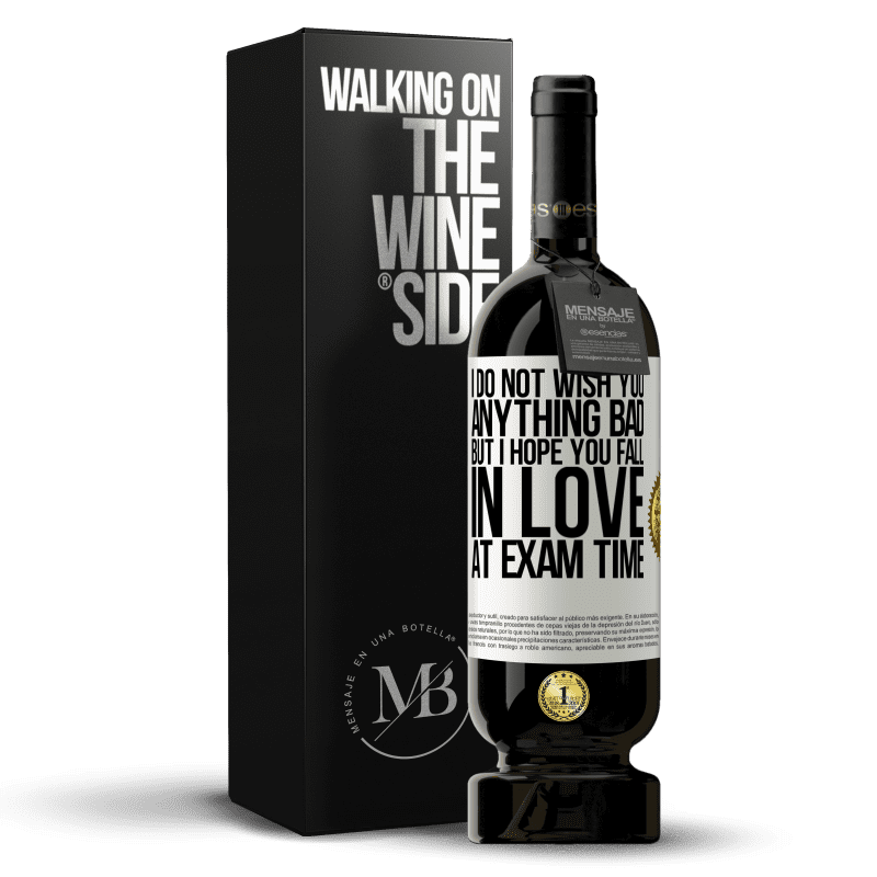 Message in a Bottle. Wine bottle with customized label. Message: "I do not wish you anything bad, but I hope you fall in love at exam time". White Label. Customizable label. |