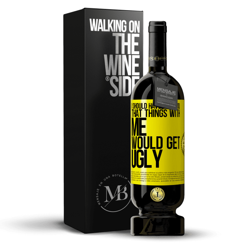 Message in a Bottle. Wine bottle with customized label. Message: "I should have told you that things with me would get ugly". Yellow Label. Customizable label. |