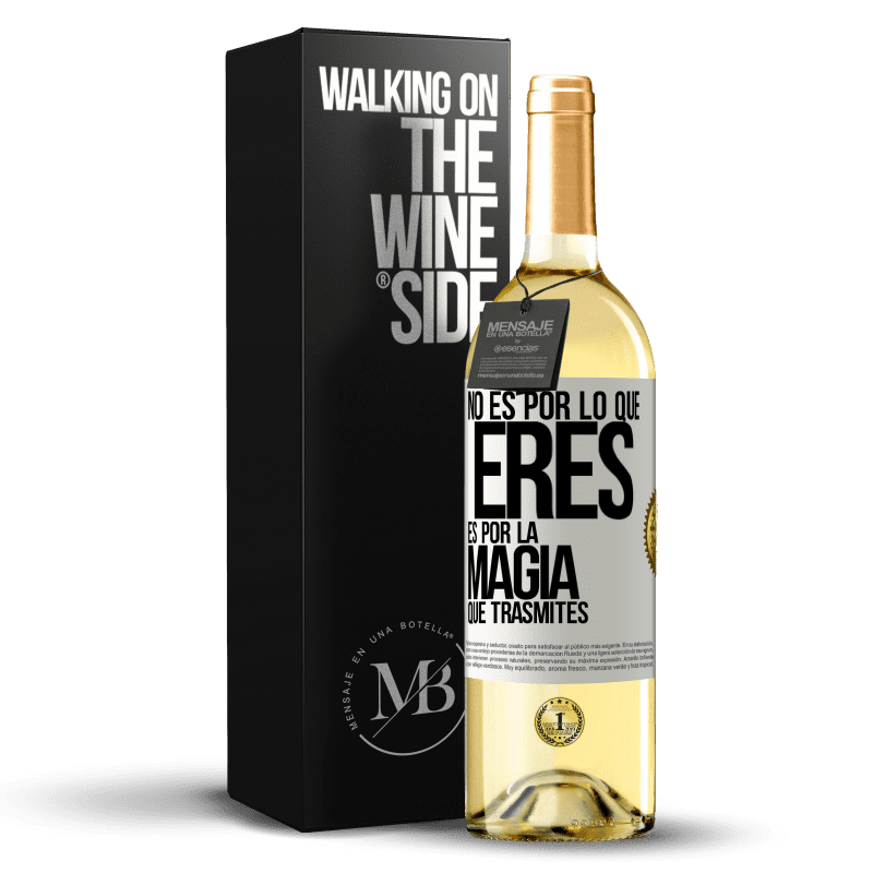 Mensaje en una Botella. Botella de vino con etiqueta personalizada. Mensaje: "No es por lo que eres, es por la magia que trasmites". Etiqueta Blanca. Etiqueta personalizable. |