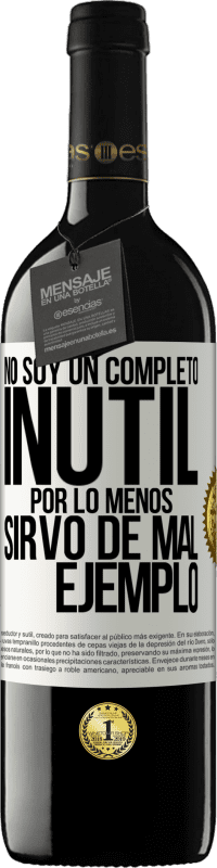 Mensaje en una Botella. Botella de vino con etiqueta personalizada. Mensaje: "No soy un completo inútil... Por lo menos sirvo de mal ejemplo". Etiqueta Blanca. Etiqueta personalizable. |