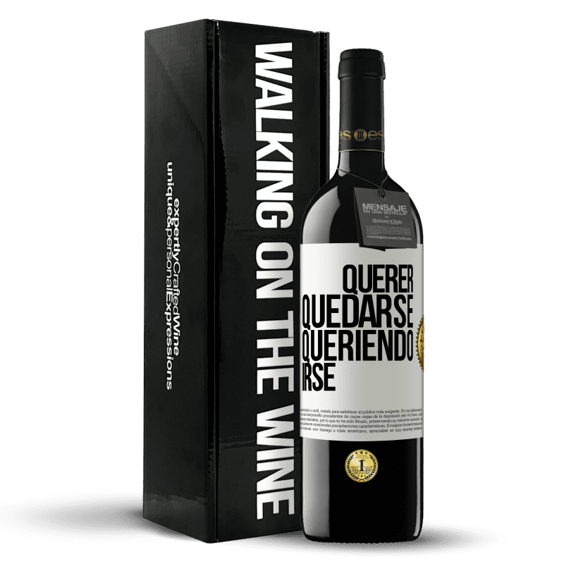 Mensaje en una Botella. Botella de vino con etiqueta personalizada. Mensaje: "Querer quedarse queriendo irse". Etiqueta Blanca. Etiqueta personalizable. |