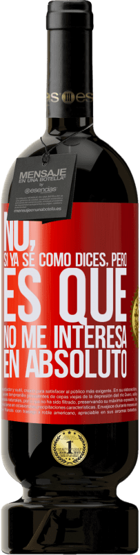 Mensaje en una Botella. Botella de vino con etiqueta personalizada. Mensaje: "No, si ya sé cómo dices, pero es que no me interesa en absoluto". Etiqueta Roja. Etiqueta personalizable. |