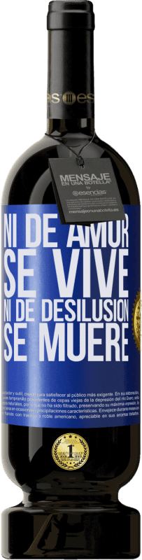 Mensaje en una Botella. Botella de vino con etiqueta personalizada. Mensaje: "Ni de amor se vive, ni de desilusión se muere". Etiqueta Azul. Etiqueta personalizable. |