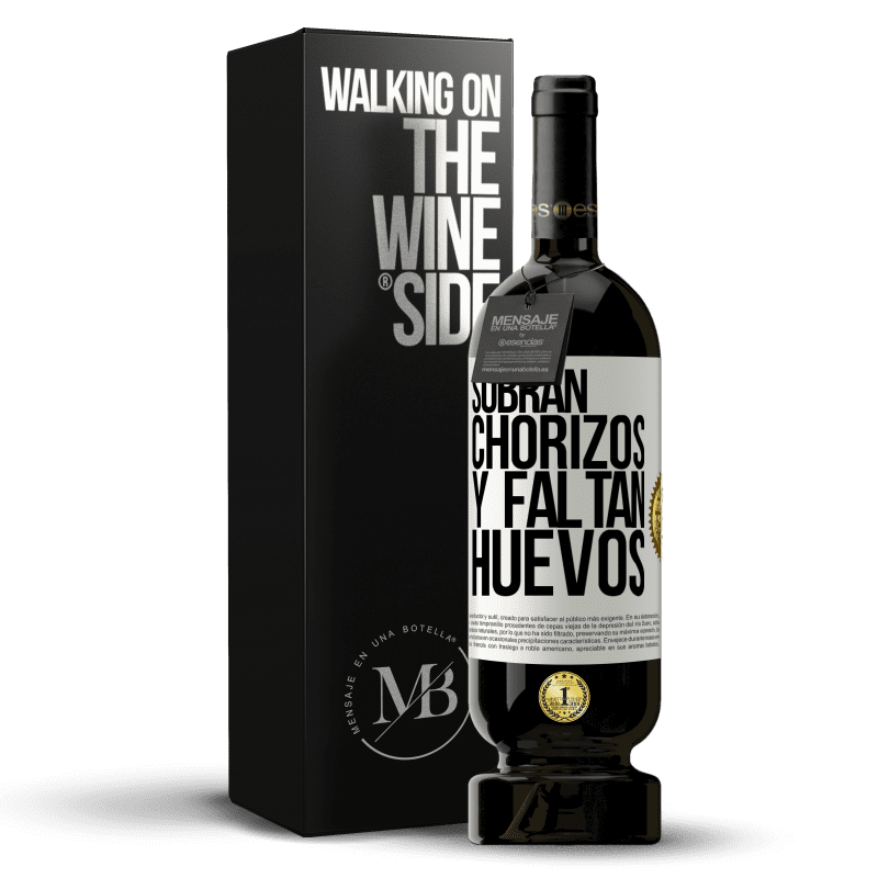 Mensaje en una Botella. Botella de vino con etiqueta personalizada. Mensaje: "Sobran chorizos y faltan huevos". Etiqueta Blanca. Etiqueta personalizable. |