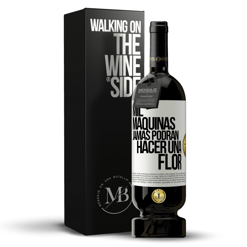 Mensaje en una Botella. Botella de vino con etiqueta personalizada. Mensaje: "Mil máquinas jamás podrán hacer una flor". Etiqueta Blanca. Etiqueta personalizable. |