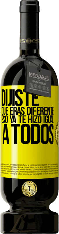 Mensaje en una Botella. Botella de vino con etiqueta personalizada. Mensaje: "Dijiste que eras diferente, eso ya te hizo igual a todos". Etiqueta Amarilla. Etiqueta personalizable. |