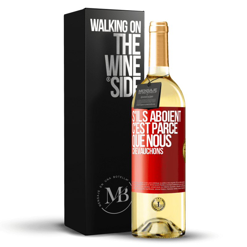 Message dans une Bouteille. Bouteille de vin avec étiquette personnalisée. Message: "S'ils aboient, c'est parce que nous chevauchons". Étiquette Rouge. Étiquette personnalisable. |