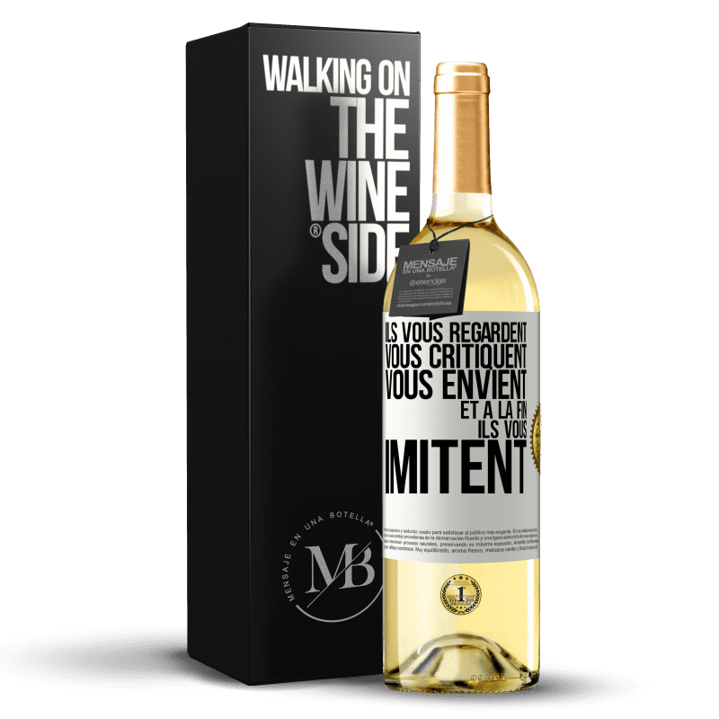 Message dans une Bouteille. Bouteille de vin avec étiquette personnalisée. Message: "Ils vous regardent, vous critiquent vous envient... et à la fin ils vous imitent". Étiquette Blanche. Étiquette personnalisable. |