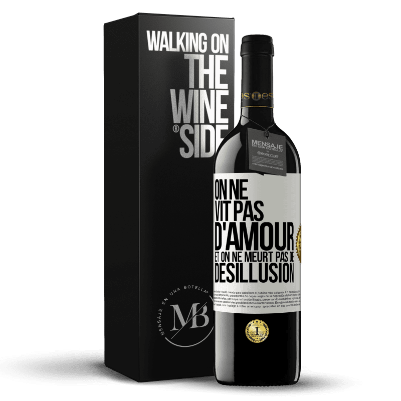 Message dans une Bouteille. Bouteille de vin avec étiquette personnalisée. Message: "On ne vit pas d'amour, et on ne meurt pas de désillusion". Étiquette Blanche. Étiquette personnalisable. |