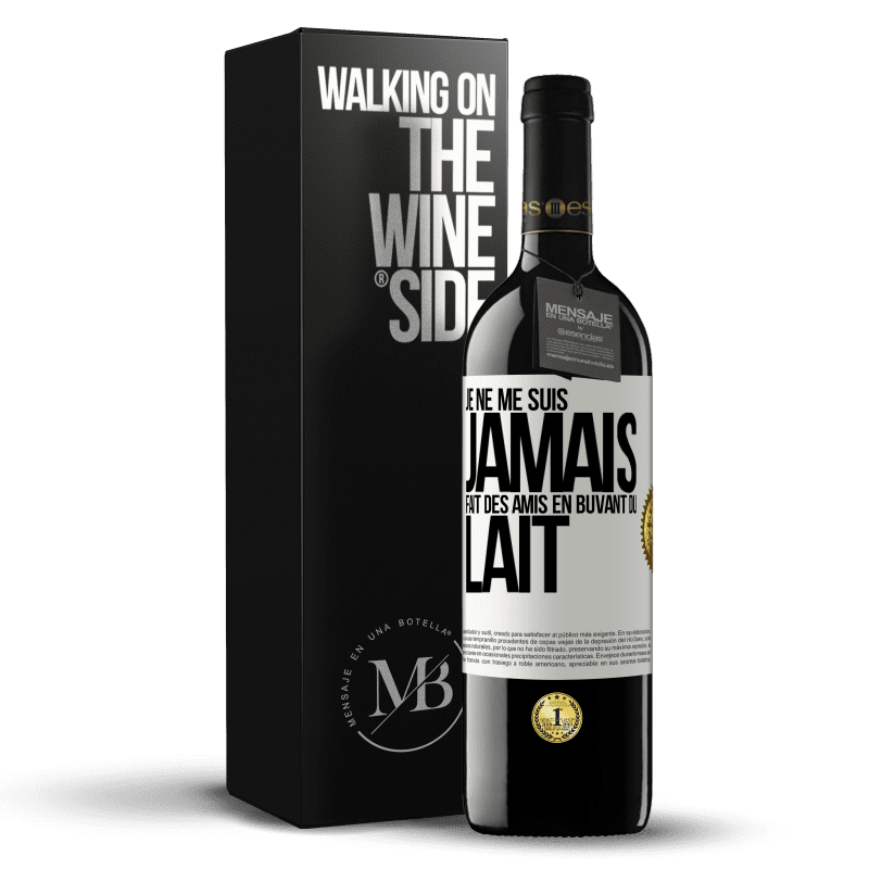 Message dans une Bouteille. Bouteille de vin avec étiquette personnalisée. Message: "Je ne me suis jamais fait des amis en buvant du lait". Étiquette Blanche. Étiquette personnalisable. |